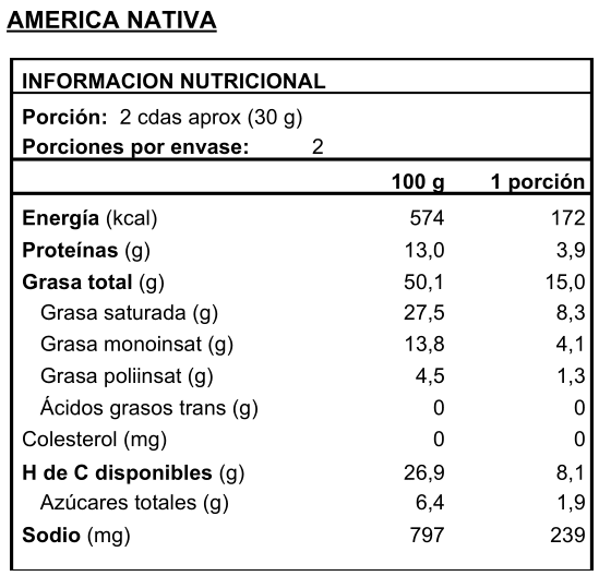 Deliciosas Castañas de Caju con finas lonjas de Coco en una atrevida combinación con Merquen Chileno, lo mejor del Caribe con el sabor del alma chilena.